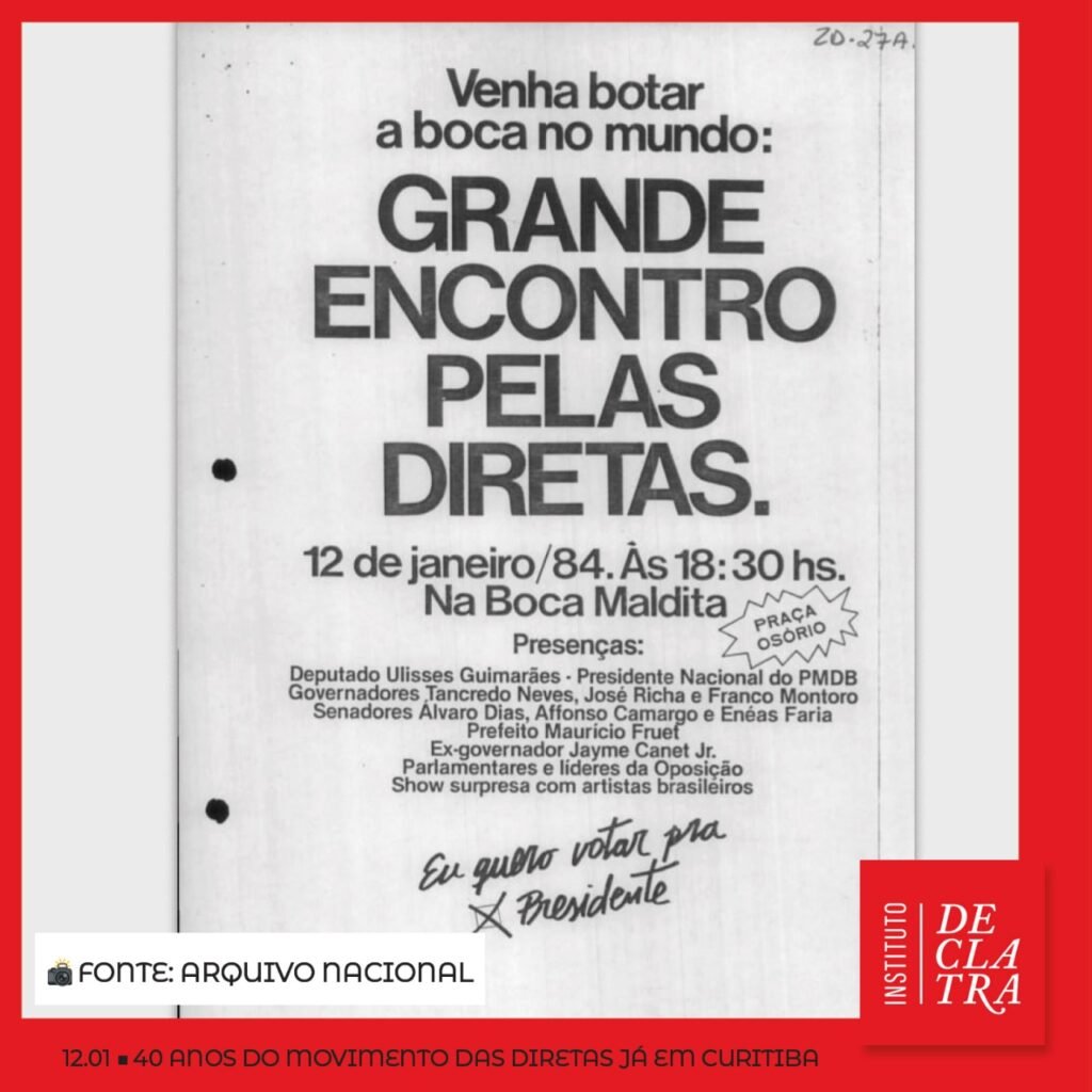 Há exatos 40 anos, em 12 de janeiro de 1984, Curitiba sediou o lançamento da campanha pelas Diretas Já, símbolo da redemocratização do Brasil. Escolhida como o palco para o primeiro teste do movimento, mais de 50 mil pessoas lotaram a Boca Maldita em defesa do voto direto. “Começamos triunfalmente. Essa é a maior manifestação […]