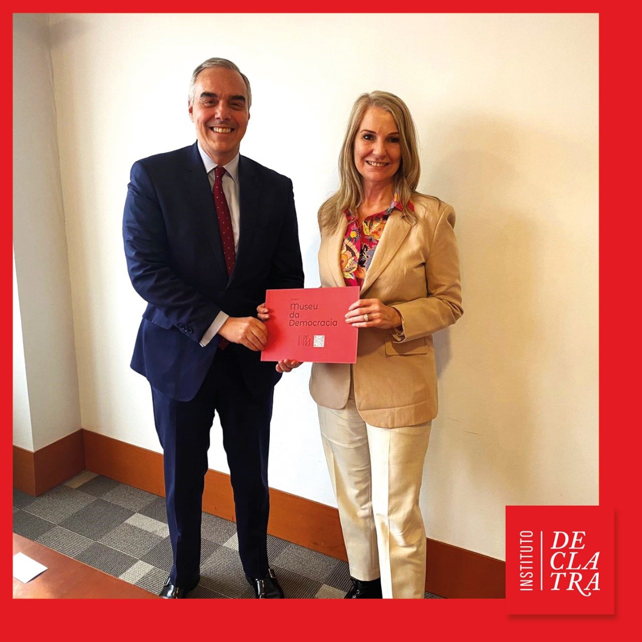 A diretora-geral do iDeclatra e ex-vice-prefeita de Curitiba, Mírian Gonçalves, apresentou o projeto Museu da Democracia de Curitiba ao embaixador do Brasil no Chile, Paulo Roberto Soares Pacheco, ontem (19 de outubro). Participaram do encontro, o primeiro-secretário de seção política, Márcio G. Taschetto Porto, a assessora do projeto do museu Aline Pinoti. A proposta foi bem-recebida na embaixada brasileira, assim como a possibilidade de aproximação com experiências museais no Chile consideradas referências na América Latina a exemplo do Museu da Memória e dos Direitos Humanos de Santiago.